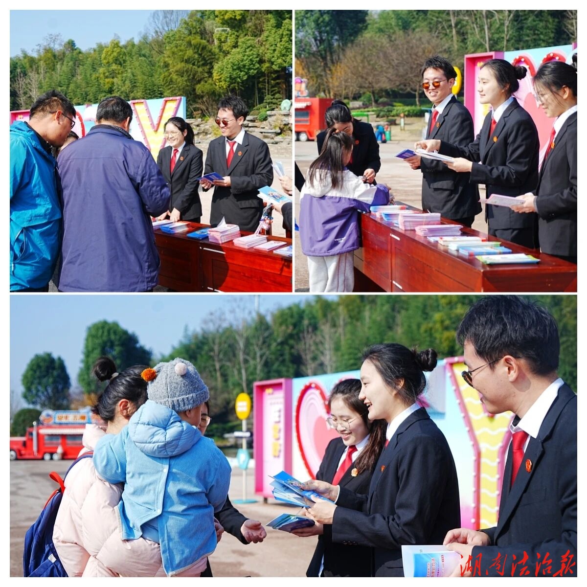 活動現(xiàn)場,干警們化身“法治宣傳員”,在游客中心廣場、親子游玩區(qū)等人流密集區(qū)域,通過發(fā)放宣傳手冊、現(xiàn)場答疑解惑、互動普法問答等形式,將法律知識送到游客身邊。針對婦女兒童重點群體,干警們重點解讀了《未成年人保護法》《反家庭暴力法》《治安管理處罰法》等法律法規(guī),結(jié)合典型案例講解預防性侵害、防范校園欺凌、識別家暴行為等實用知識,引導婦女增強自我保護意識,鼓勵未成年人勇敢維護自身合法權(quán)益。