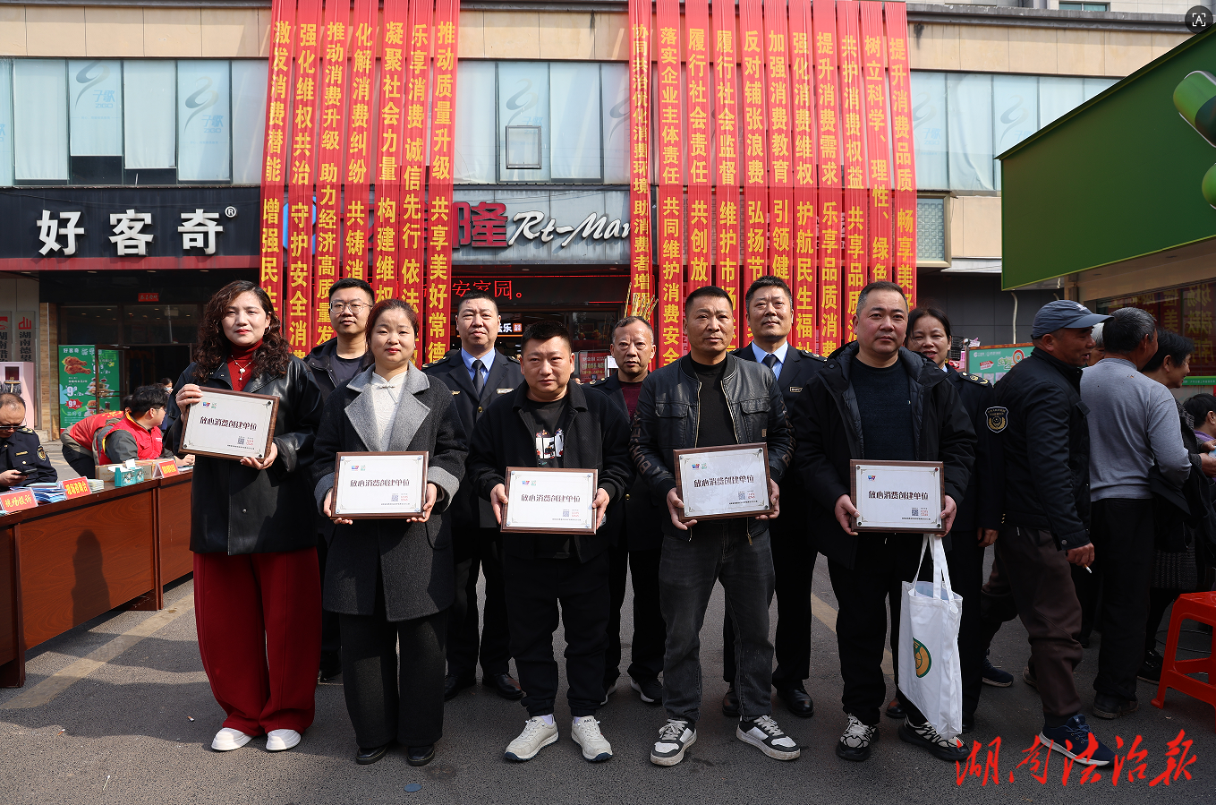 活動(dòng)現(xiàn)場(chǎng)最引人注目的環(huán)節(jié),是“放心消費(fèi)創(chuàng)建單位”的授牌儀式。當(dāng)常德市西湖鄧氏腐乳加工廠、萬(wàn)事鑫大米加工廠、巴陵春煙酒店、金博士文體超市、湖南心芝大藥有限公司西湖分店這5家誠(chéng)信經(jīng)營(yíng)、群眾口碑好、示范帶動(dòng)強(qiáng)的市場(chǎng)主體的負(fù)責(zé)人接過(guò)牌匾時(shí),現(xiàn)場(chǎng)響起了熱烈的掌聲,經(jīng)營(yíng)主體表示將以標(biāo)桿引領(lǐng)行業(yè)誠(chéng)信自律,自覺接受社會(huì)監(jiān)督,以實(shí)際行動(dòng)守護(hù)消費(fèi)者合法權(quán)益,推動(dòng)消費(fèi)環(huán)境持續(xù)優(yōu)化。