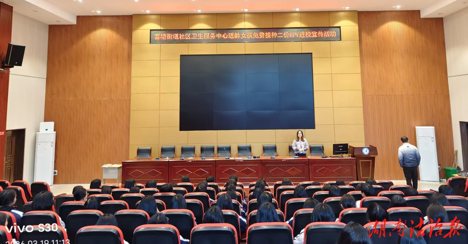 湖南法治報(bào)訊(通訊員 李昌春 何小艦)為守護(hù)青少年身心健康,筑牢校園健康防線,3月19日,道縣富塘街道社區(qū)衛(wèi)生服務(wù)中心組織醫(yī)護(hù)人員走進(jìn)紹基中學(xué),開(kāi)展“適齡二價(jià)HPV疫苗免費(fèi)接種進(jìn)校園”宣傳活動(dòng),為全校適齡女生普及HPV疫苗接種及宮頸癌預(yù)防知識(shí)。