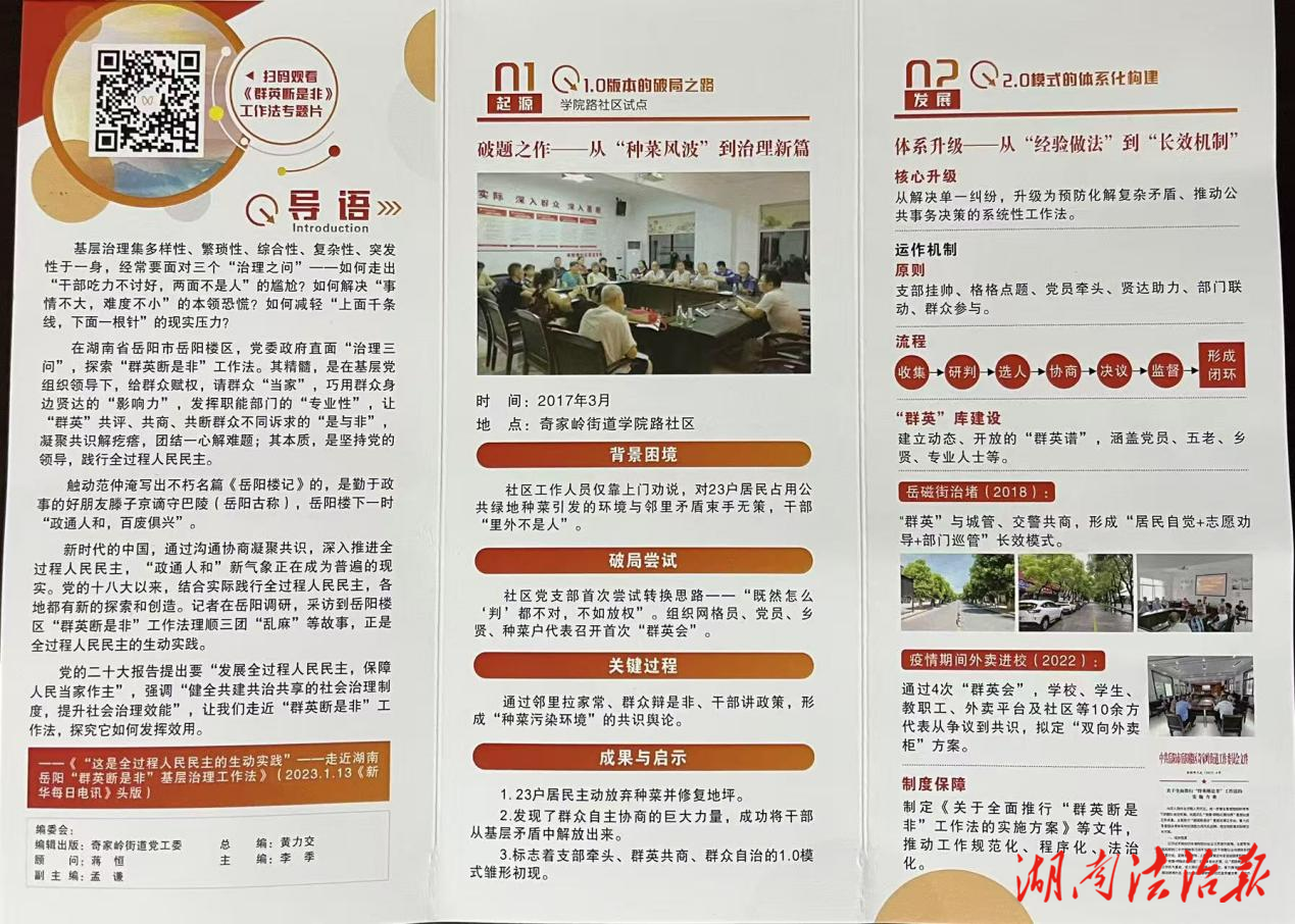 制度固本,文化鑄魂?;鶎又卫憩F(xiàn)代化不僅需要制度創(chuàng)新,更需要文化建構?!叭河嗍欠恰惫ぷ鞣òl(fā)源于岳陽樓區(qū)奇家?guī)X街道,目前,這一基層創(chuàng)新,正穩(wěn)步從“實踐經(jīng)驗”邁向“文化品牌”,這是一場從“事怎么辦”到“人心怎么聚”的跨越。