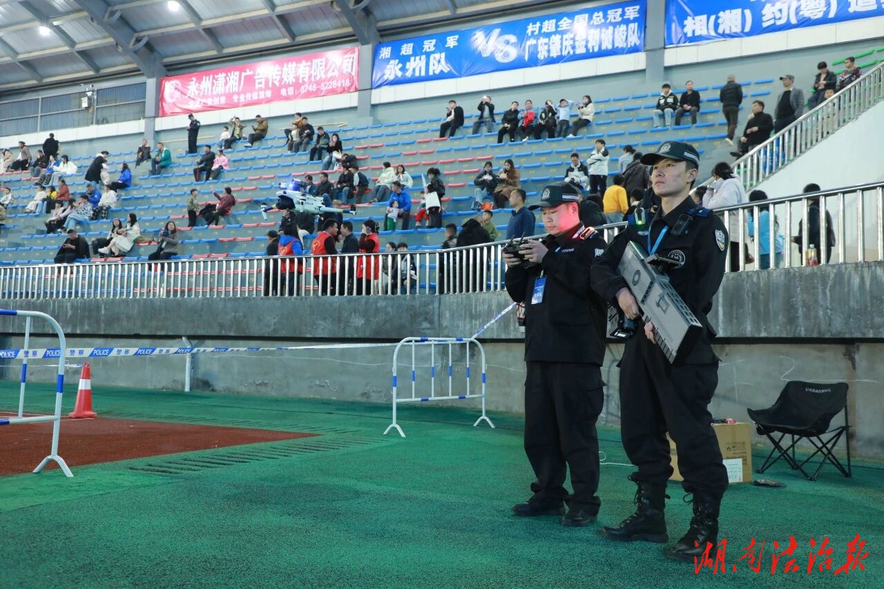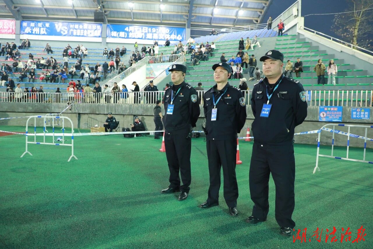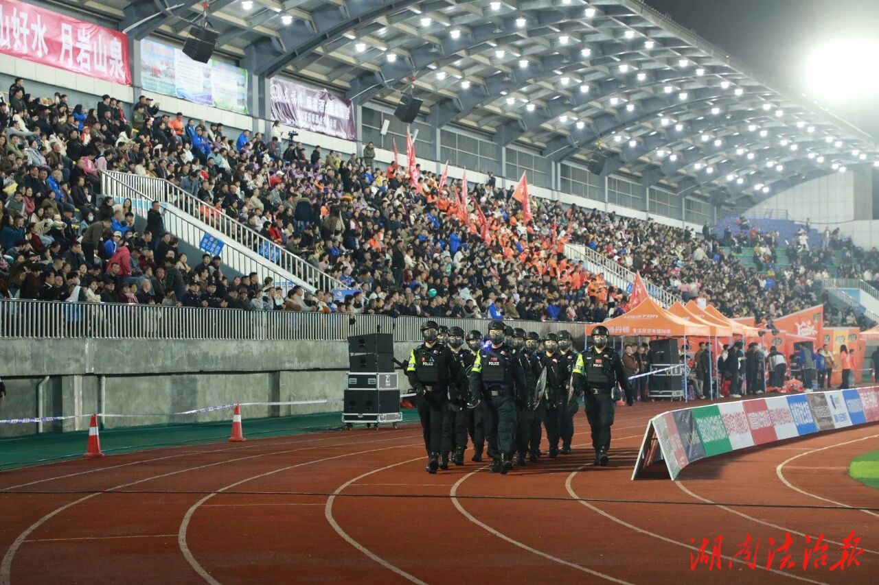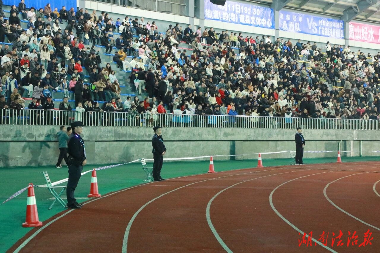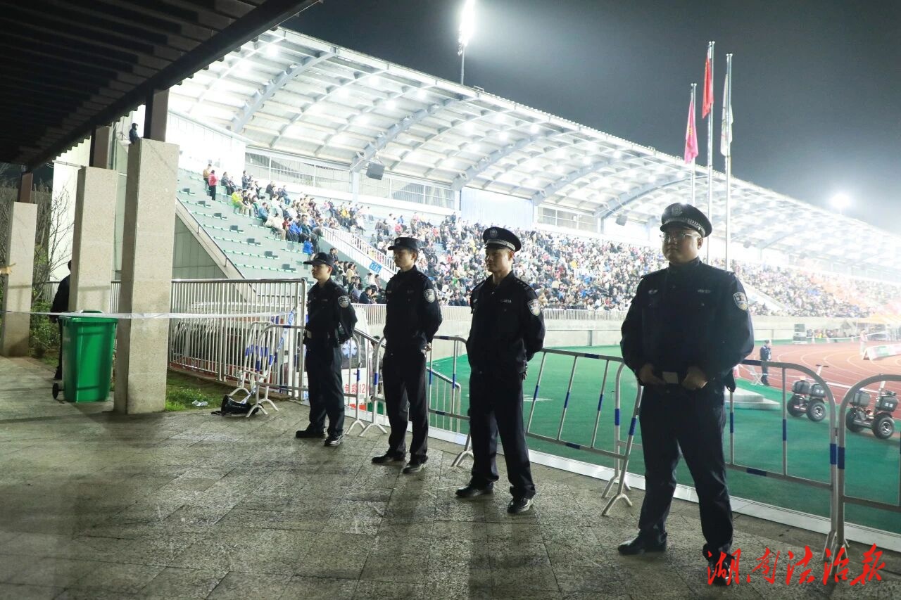 湖南法治報訊(通訊員 道公宣)3月22日晚,永州市足球超級聯(lián)賽道縣主場第一場常規(guī)賽在道縣文體中心舉行,道縣隊在主場迎來了與藍山隊的較量。隨著主裁判一聲哨響,一場扣人心弦的綠茵對決正式拉開帷幕。賽場上,球員們激烈拼搶、揮灑汗水;賽場外,道縣公安局民輔警嚴(yán)陣以待、忠誠履職,以最高標(biāo)準(zhǔn)、最嚴(yán)要求、最實舉措,圓滿完成此次賽事安保任務(wù),為這場足球盛宴筑起了一道堅實的安全防線。