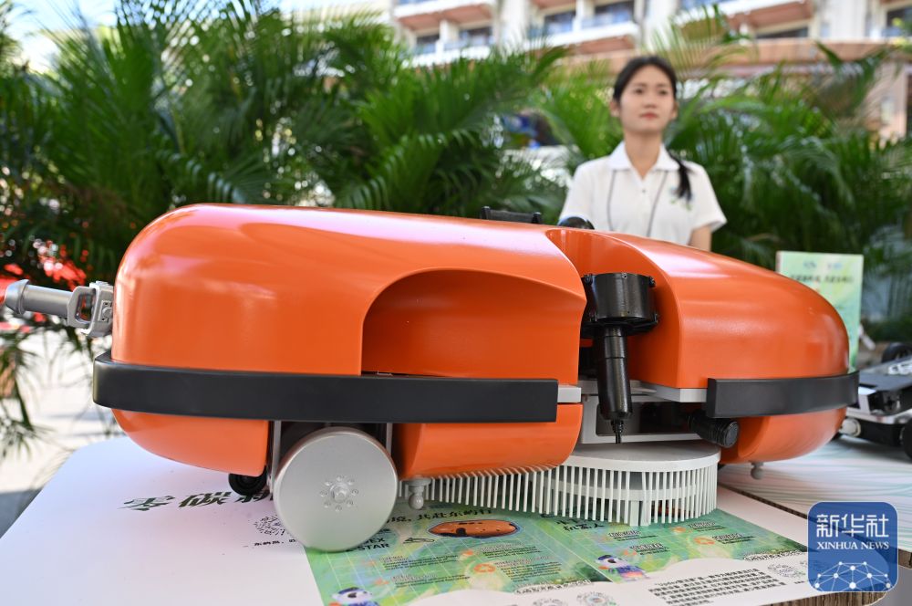 ↑ 3月25日,智能無人割草機在中國(海南)南海博物館周邊草坪上作業(yè)。