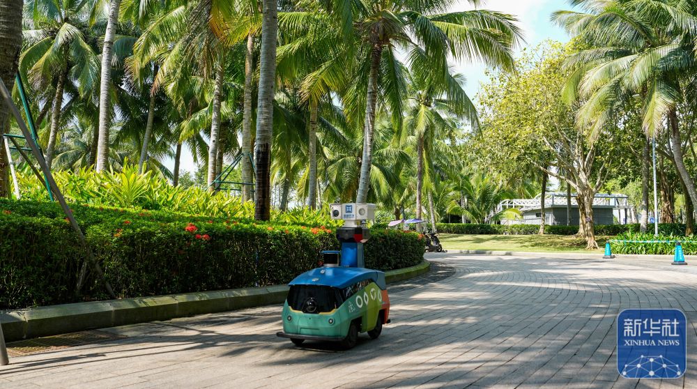 ↑ 3月25日,無人巡邏車在中國(海南)南海博物館周邊巡邏。